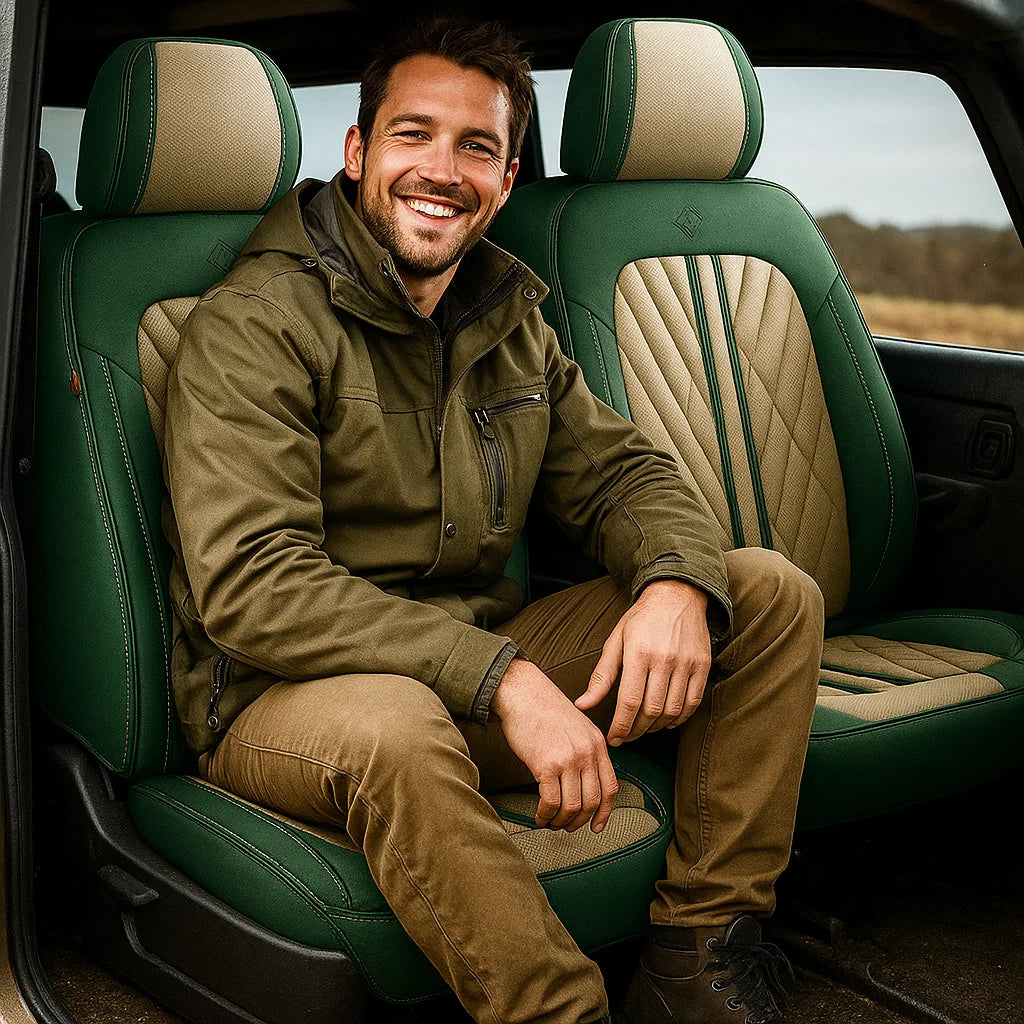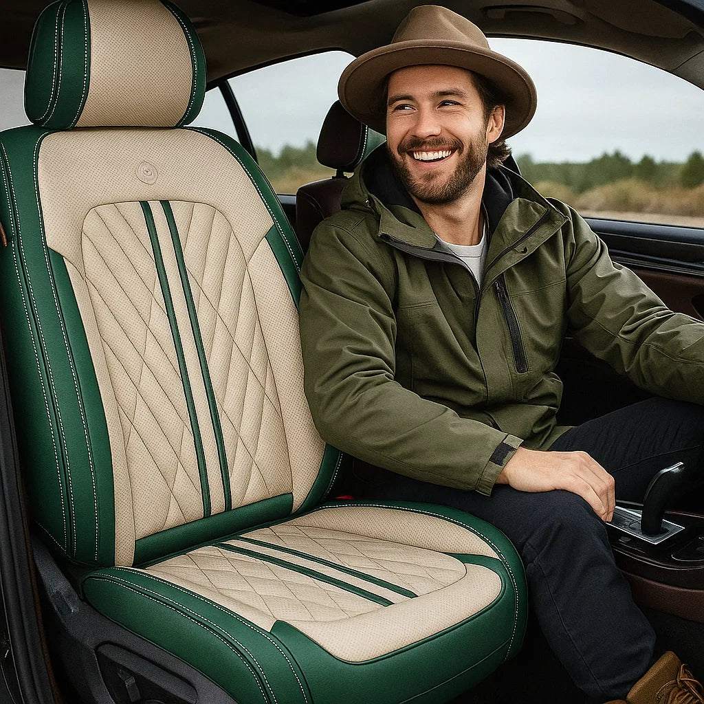 Enhance your vehicle’s interior with our beige and green custom car seat covers. Designed for a perfect fit, these covers provide superior protection while adding a vibrant, stylish touch to your seats with a unique blend of beige and green hues.