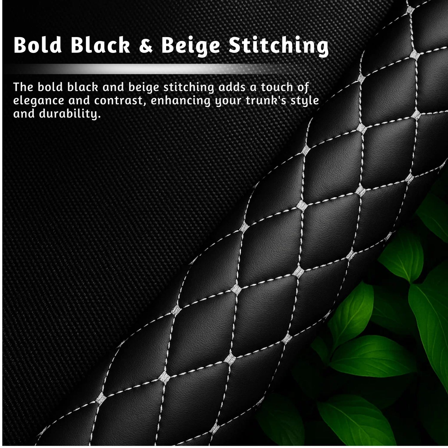 Made from high-quality, easy-to-clean materials, these custom trunk mats feature elegant black and beige stitching that adds a refined touch to your vehicle’s cargo area. Designed for a precise fit, they offer reliable protection, durability, and a sophisticated finish.