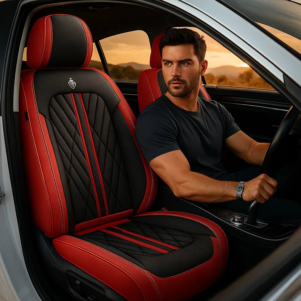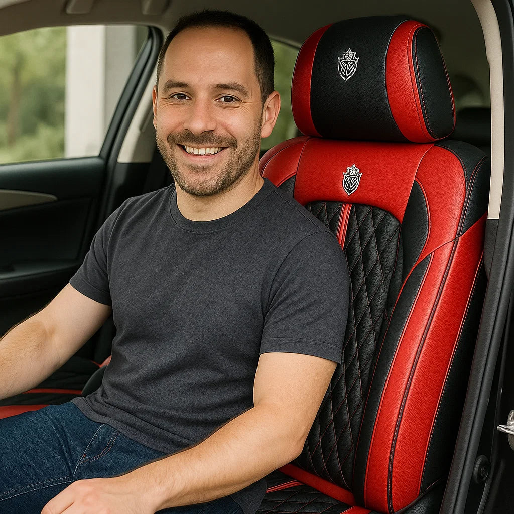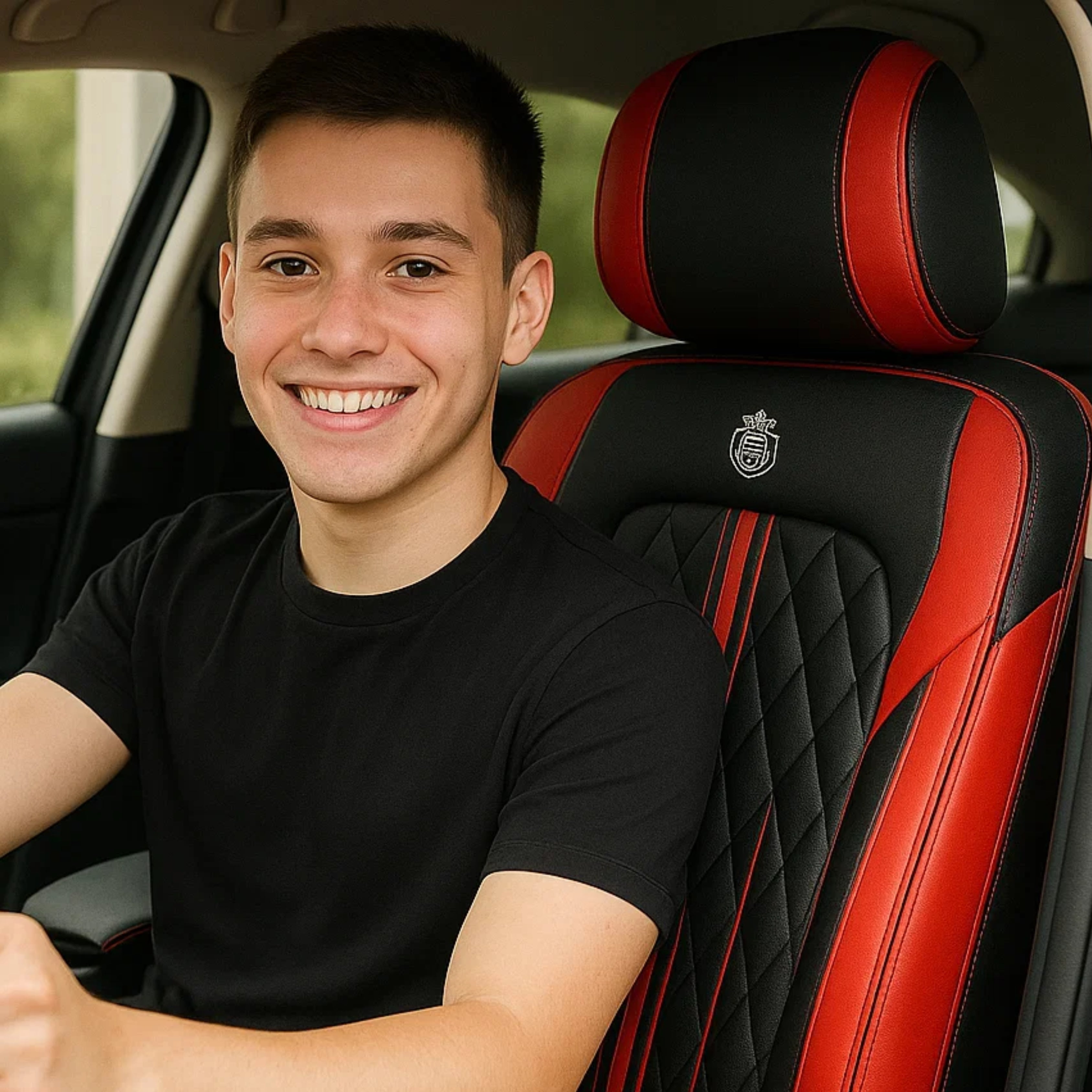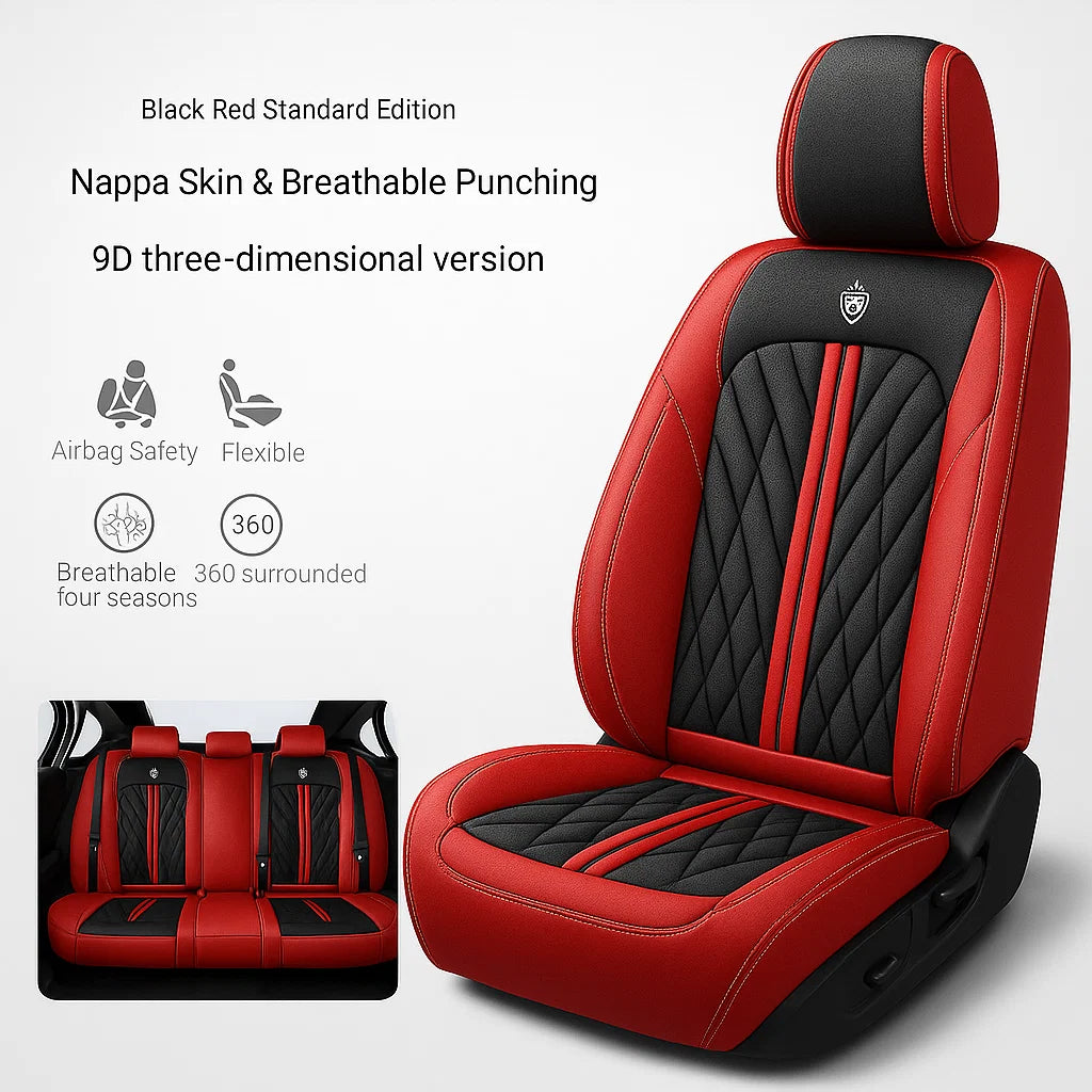 The Black & Red Standard Edition seat cover features Nappa skin with breathable punching and a 9D three-dimensional design for full-body support. Flexible, airbag-safe, and 360° wrapped, it offers four-season comfort while upgrading your cabin with a sleek, tailored look.
