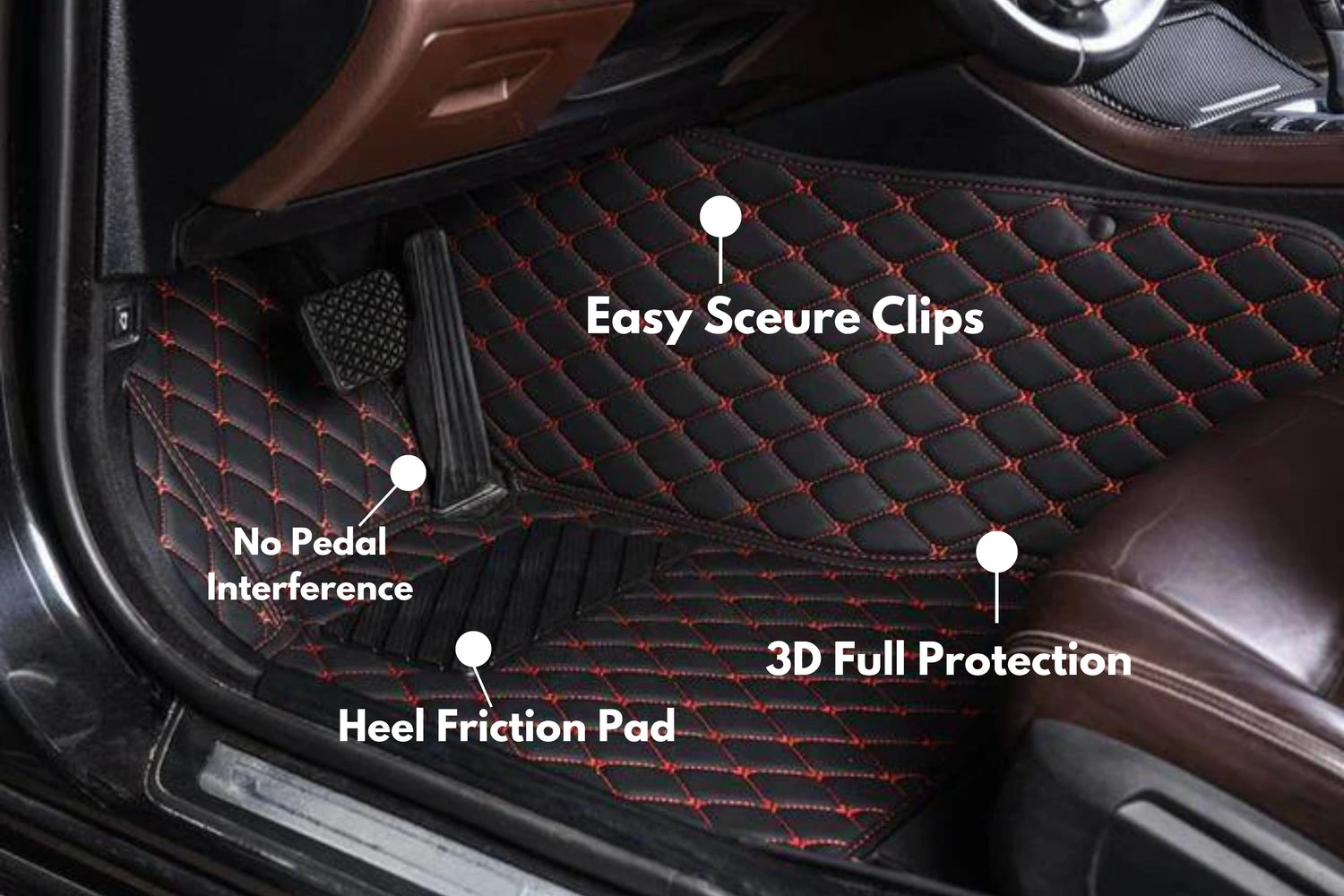 Designed for both safety and comfort, these mats feature secure clips, no pedal interference, a heel friction pad, and full 3D protection—giving your car a flawless fit with maximum durability.