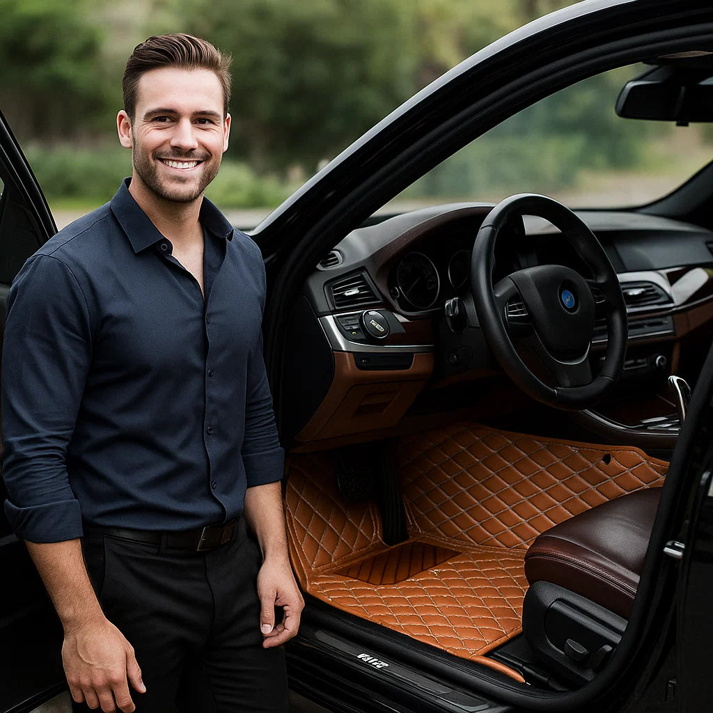 Crafted from high-quality, easy-to-clean materials, these brown custom floor mats offer a warm, refined look while providing full coverage and protection. Designed for a perfect fit, they combine durability and elegance to enhance your car’s interior with everyday comfort and style.