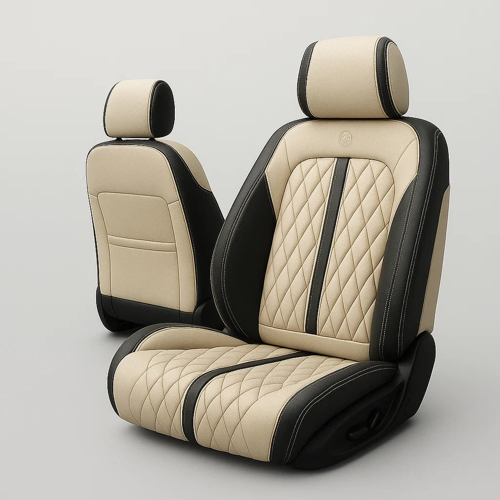 Experience next-level comfort and luxury with Beige & Black Car Seat Covers. Made from premium quilted PU leather, these covers feature a soft-touch surface and stylish diamond stitching that instantly enhances your interior. Built to last, they offer a durable fit and a sleek upgrade that protects your seats while elevating your entire cabin.