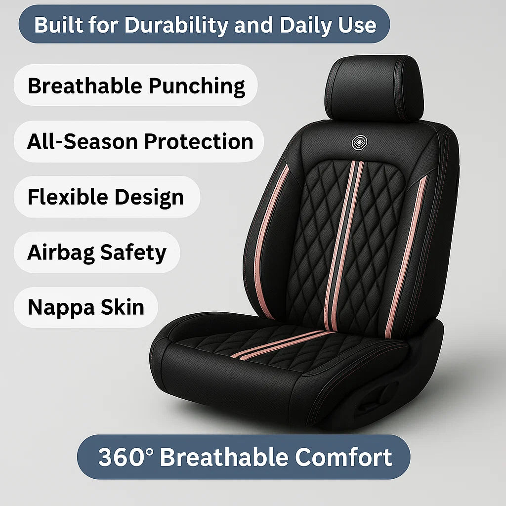 These custom black and pink car seat covers offer a bold and stylish look while providing excellent protection for your seats. Crafted from durable, wear-resistant materials, they feature a perfect fit, airbag compatibility, and a sleek, sporty design that enhances your car’s interior.