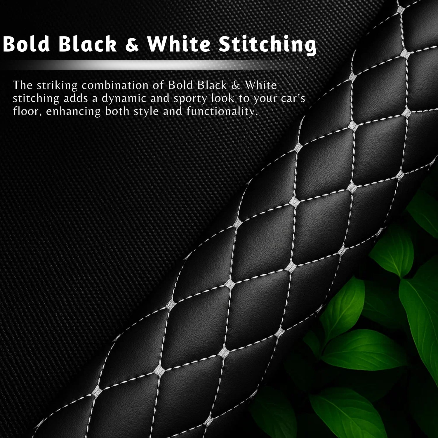 Crafted from durable, easy-to-clean materials, these custom trunk mats feature bold black and white stitching for a sleek, modern look. Designed to fit your vehicle perfectly, they provide reliable protection while adding a touch of style to your car’s cargo space.