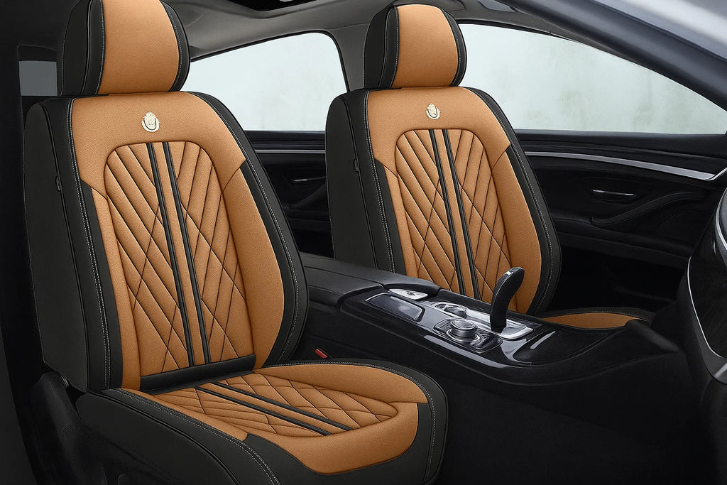 Elevate your car's interior with Custom Brown & Black Car Seat Covers. Made from high-quality PU leather, these sleek, two-tone covers offer a perfect fit, comfort, and protection against spills, dirt, and wear.