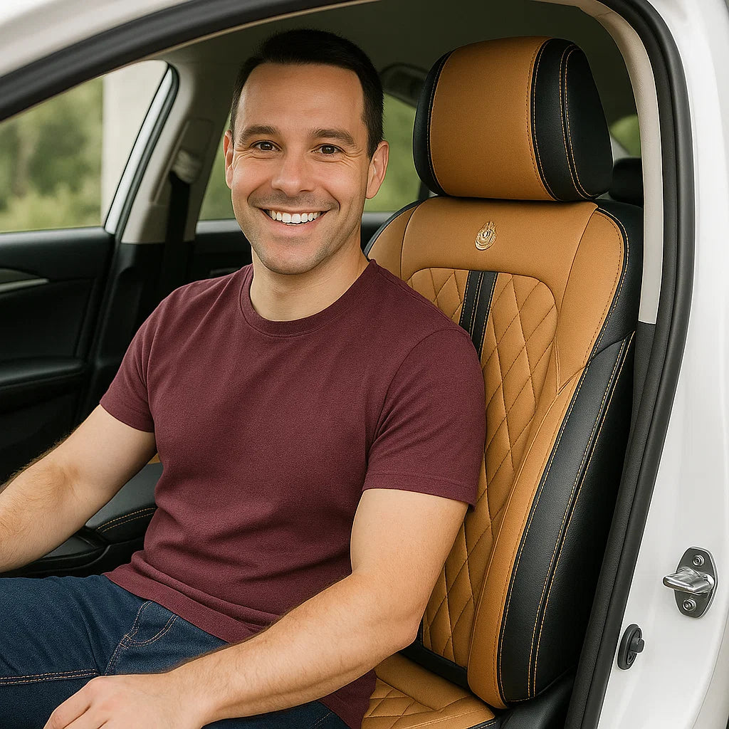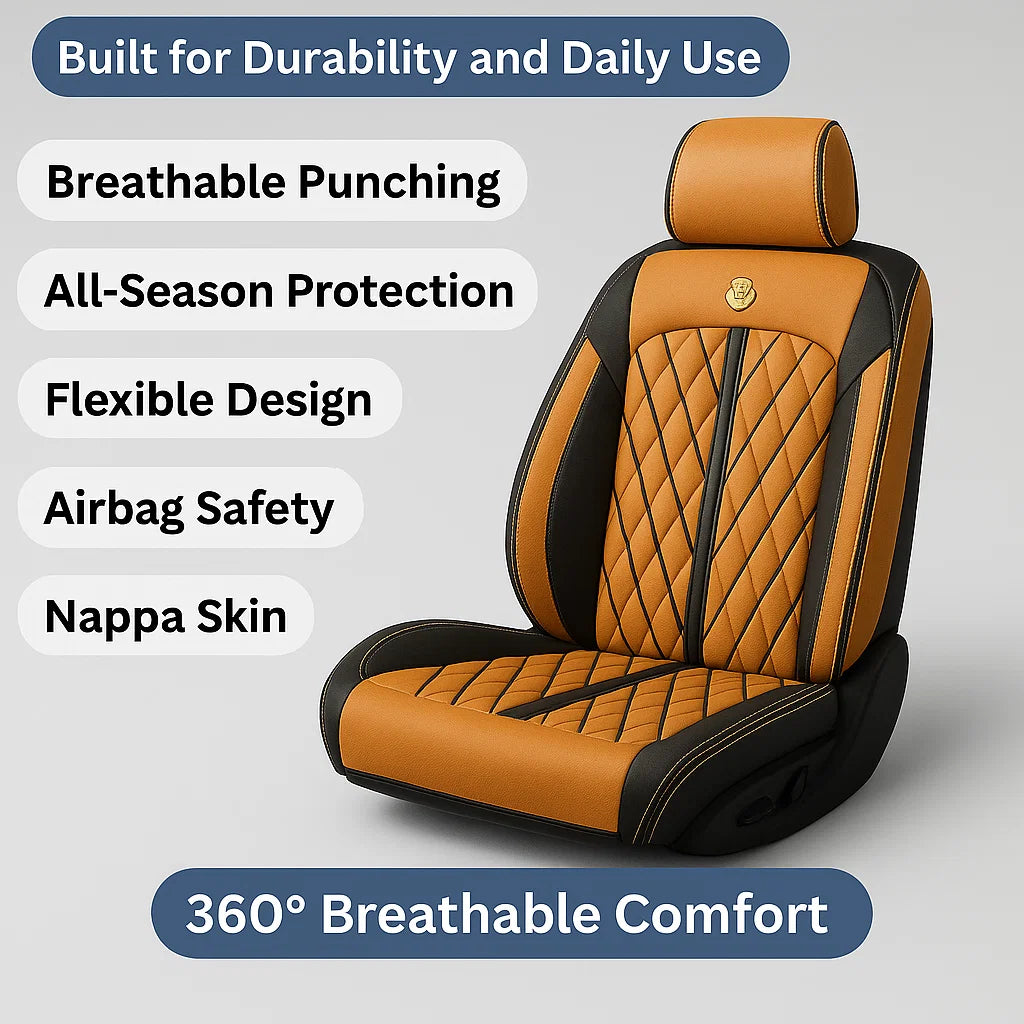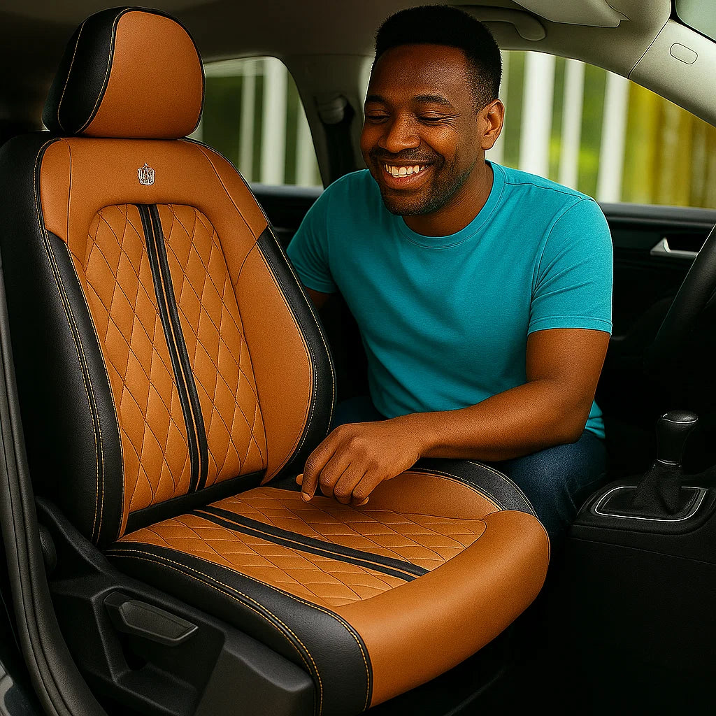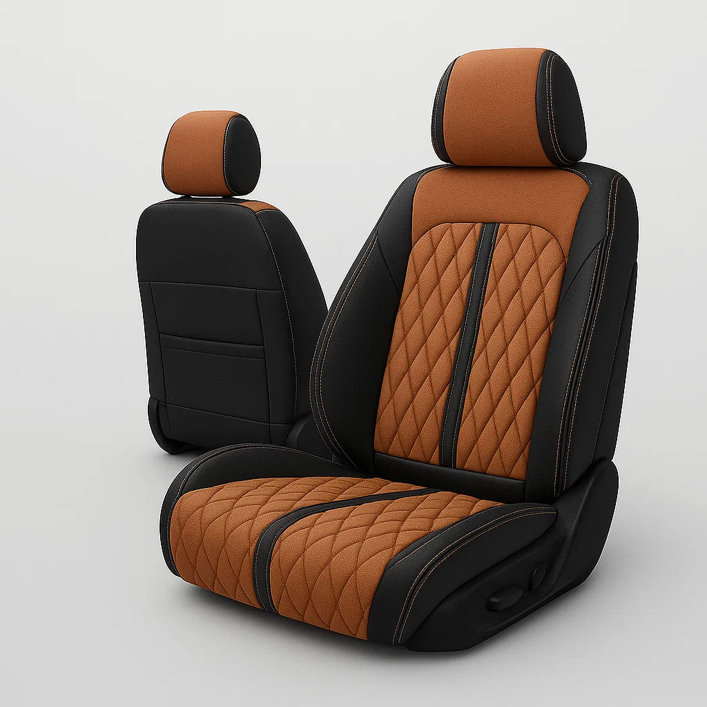 Upgrade your car with our Custom Brown & Black Car Seat Cover. Made from soft, breathable Nappa skin, it combines luxury with durability. Featuring a sleek design with diamond stitching, this cover ensures comfort and protection while adding a sophisticated touch to your interior.