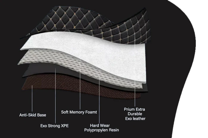 Backed by years of research, our designers developed a durable 5-layer leather car mat structure—crafted for long-lasting performance, comfort, and protection in any driving condition.